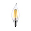 With this LED filament tip candle lamp you easily bring atmosphere into your interior. Thanks to the classic look, the lamp is beautiful in itself, but in combination with your fixture, this light source becomes a real eye-catcher. Show this light source off to its best advantage in your wall lamp, ceiling lamp or pendant lamp with an E14 fitting. Due to the narrow dimensions of ø 35 mm by 98 mm this lamp is also suitable for narrow fixtures.