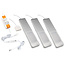 The Lex is a complete set that consists of three surface-mounted lamps, a transformer and a connector box. Due to the very low construction height of 8 millimetres, the spots are suitable for placement under kitchen cabinets. Installation is easy because the set is part of a plug and play system. This means that there are connectors at the ends of the spots that you can easily click into the connector box. The wire per spotlight is 1.5 metres long. The lamps operate on a 12-volt constant voltage supply, so the accompanying transformer is always needed.