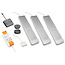 The Lex is a complete set that consists of three surface-mounted lamps, a transformer and a connector box. Due to the very low construction height of 8 millimetres, the spots are suitable for placement under kitchen cabinets. Installation is easy because the set is part of a plug and play system. This means that there are connectors at the ends of the spots that you can easily click into the connector box. The wire per spotlight is 1.5 metres long. The lamps operate on a 12-volt constant voltage supply, so the accompanying transformer is always needed.